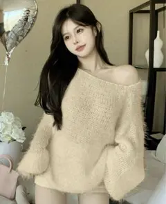 ゆったり✨SHEIN【2XL】ネイビー ボートネック ニット 長袖 大きめサイズ