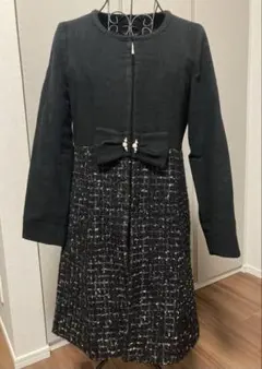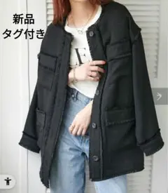 ノーカラーツイードミドル丈コート
