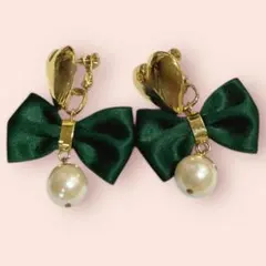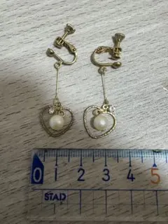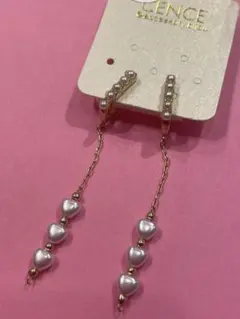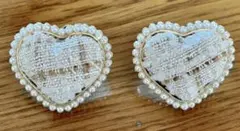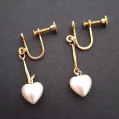 ハート型のパールで耳の金具が隠れていて、下の大きな飾りは小さいパールがハート型になるように並んでいます。