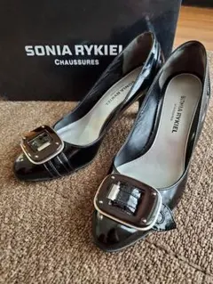ソニアリキエル レザーストラップヒールパンプス 36ハーフ ヒール9cm