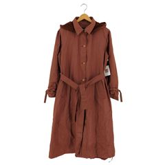 ベージュのステンカラーコート、長袖、ポケット付きで実用的。