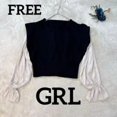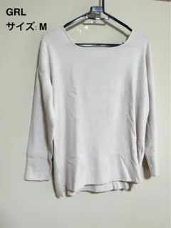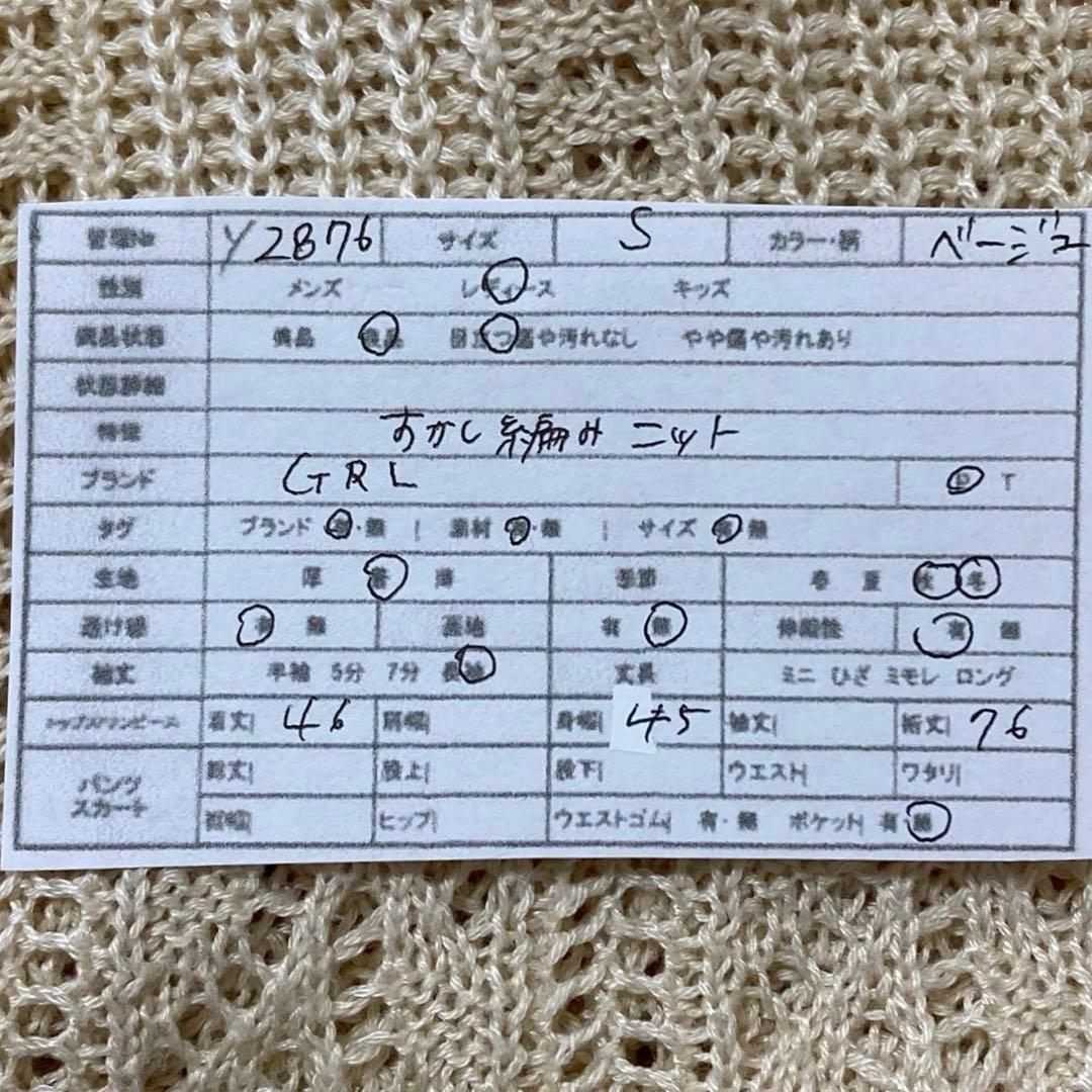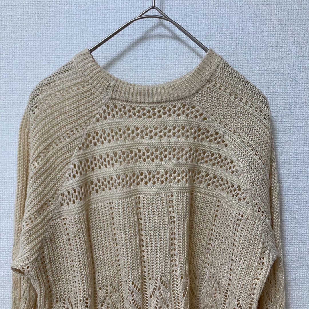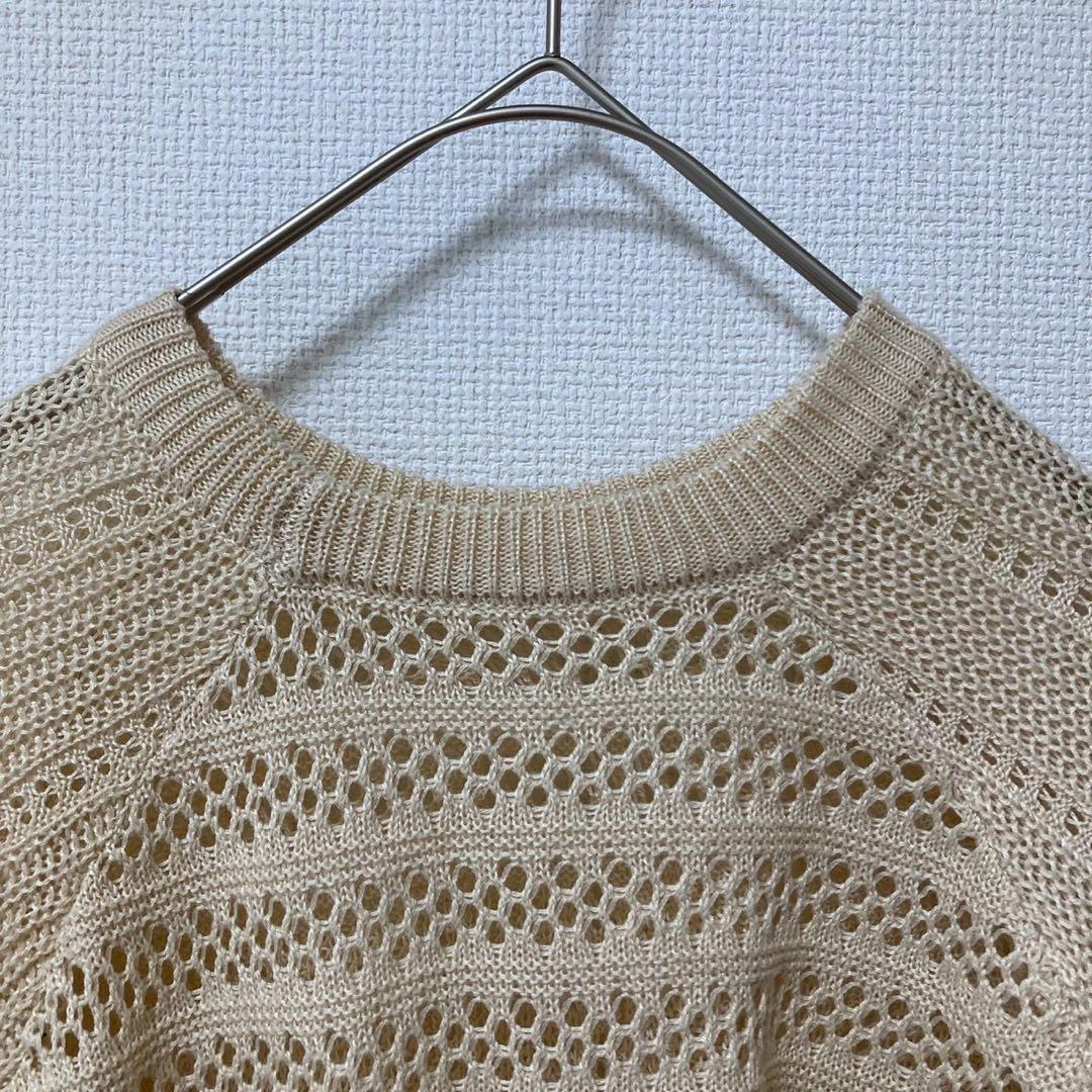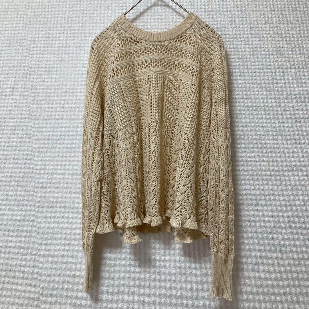 【グレイル】GRL✨良品✨透かし編みニット 裾フリル 袖リブ ベージュ 長袖 S