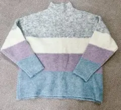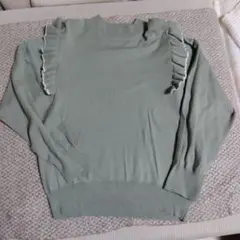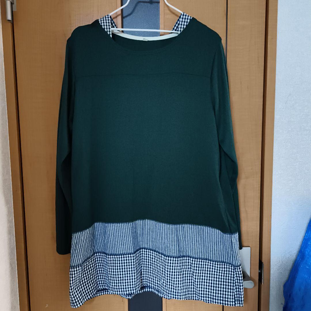 未使用品 グリーン ニット チュニック 異素材 切り替え LL 大きめサイズ 緑