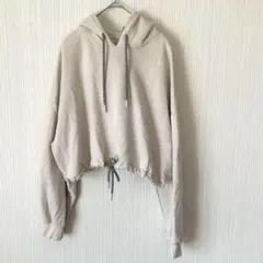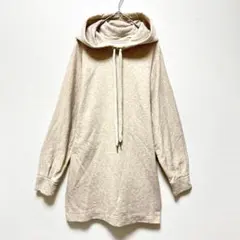 フロントに「femme」のプリントが施されたベージュのフード付きパーカー。