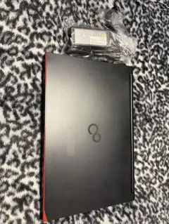 Fujitsu製ノートPC、ブラックとレッドのスタイリッシュなデザイン。