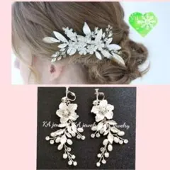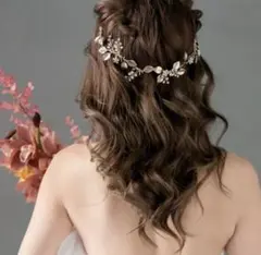 ♡ローズイヤリング・ヘッドドレスセット☆ ブライダルピンクゴールドヘアアクセサリー