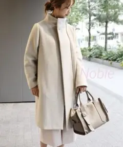 NOBLE ベージュノーカラーロングコート ベルト付き