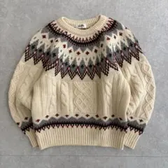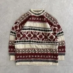 ビンテージ 総柄ニット エスニック セーター クルーネック 個性的 レディース メンズ