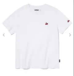 チェリーのプリントが特徴的なイエローカラーの半袖Tシャツ。