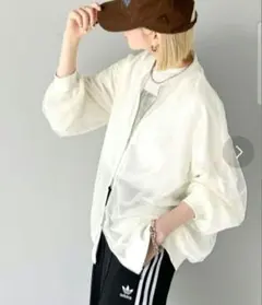 オーバーシルエットのアウターです。裾部分がかなりふんわりとしており、ポンチョの様なシルエットです。ナチュラルベージュなので、どんな服装にも合うと思います。中にオーバーサイズニットを着てもシルエットが気にならないアウターなので、重宝すると思います。知人にサンプル品として譲っていただいたものの為、ラベル表記は手書きになります。襟ボタン1つが潰れています。写真にてご確認ください。