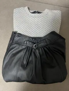 - 特徴: ボタン付きのトップスとバックル付きのスカート