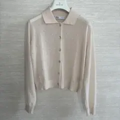 ZARA ベージュ パール装飾 ニットカーディガン S