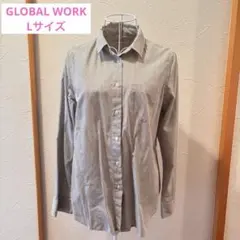 グローバルワーク ストライプ長袖シャツ(ブルー、ホワイト)