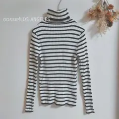 ストライプ タートルネック ニット 長袖 Mサイズ