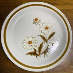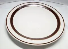 昭和レトロ 大皿 洋食用 ONADA ストーンウェア皿 ベージュ茶色ストライプ