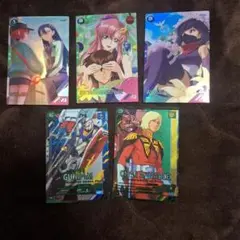 機動戦士ガンダムのトレーディングカードセット、各モデルが鮮やかにデザインされています。