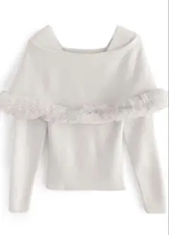 GRL パール ストラップ オフショルダー シャギー ニット トップス ブラック
