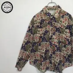 ヴィンテージ風 レトロ バティック柄 ペイズリー柄 葉柄 y2k 柄シャツ