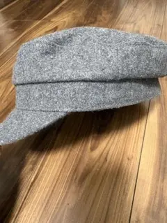 ウール素材のベージュキャスケット、スタイリッシュなデザイン。