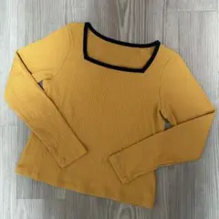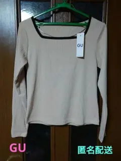 GU ホワイトリブ編み スクエアネック パフスリーブ M