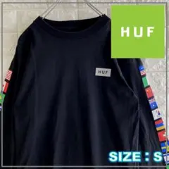 HUFのロングスリーブTシャツ、ホワイトカラー、プリントロゴデザイン。