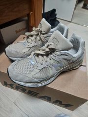 メッシュとスエードのコンビで、快適な履き心地のベージュスニーカー。