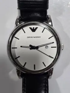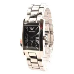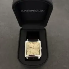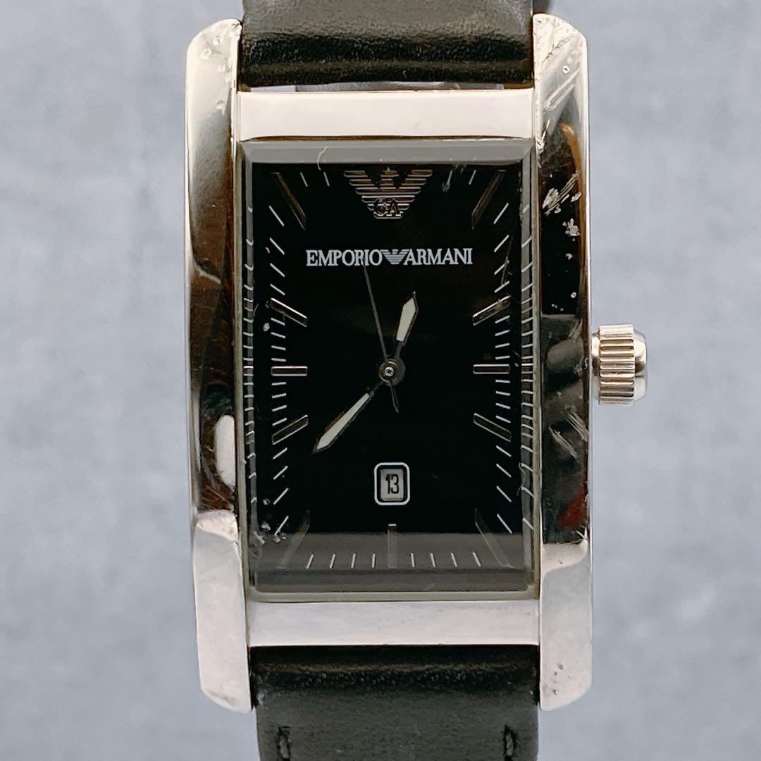 【稼動品】EMPORIO ARMAANI ブラックレザー腕時計 メンズスクエア