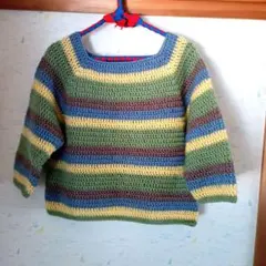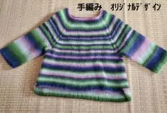 淡いピンク・ラベンダー・ホワイトが混ざったマルチカラーの手編み風ニットセーターです。