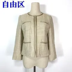 自由区 38 M ジャケット ショート丈 無地 ライトベージュ レーヨン混 清楚