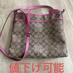 ベージュとピンクのコントラストが魅力的なショルダーバッグ。