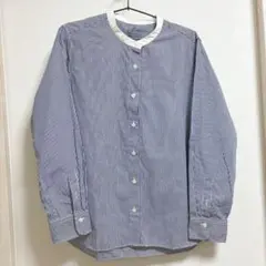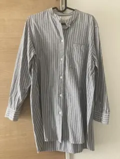 【無印良品】洗いざらしスタンドカラーロングシャツ ライトブルーストライプ