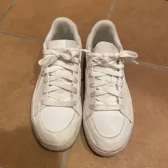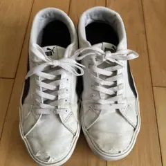 ホワイトのPUMAスニーカー、ロゴ入りデザインでラバーソール。