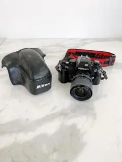 クラシックなデザインのNikon一眼レフカメラ、シルバーとブラックのコンビネーション。