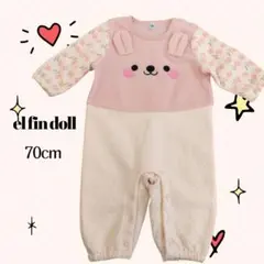 ELFINDOLL 水色ストライプロンパース 70cm