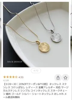 コインネックレス 2点セット シルバー ゴールド 金アレ対応 コインラウンド