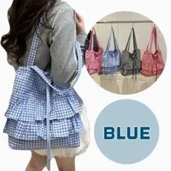 【新品】トートバッグ ギンガムチェック フリル レトロ ガーリー 大容量 赤