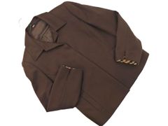 DAKSの38サイズ、ベージュジャケット。シルバーカラーのDAKSロゴ入りボタン付き。ポケットあり