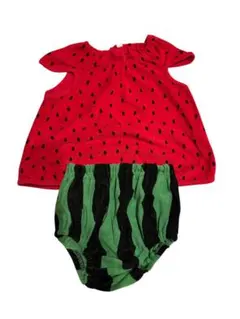 - デザイン: 黒のトップと赤の水玉フリル