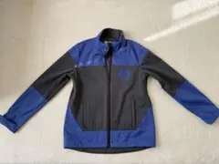 ホワイトのジップアップジャケット、リブ編みの襟と袖付き。