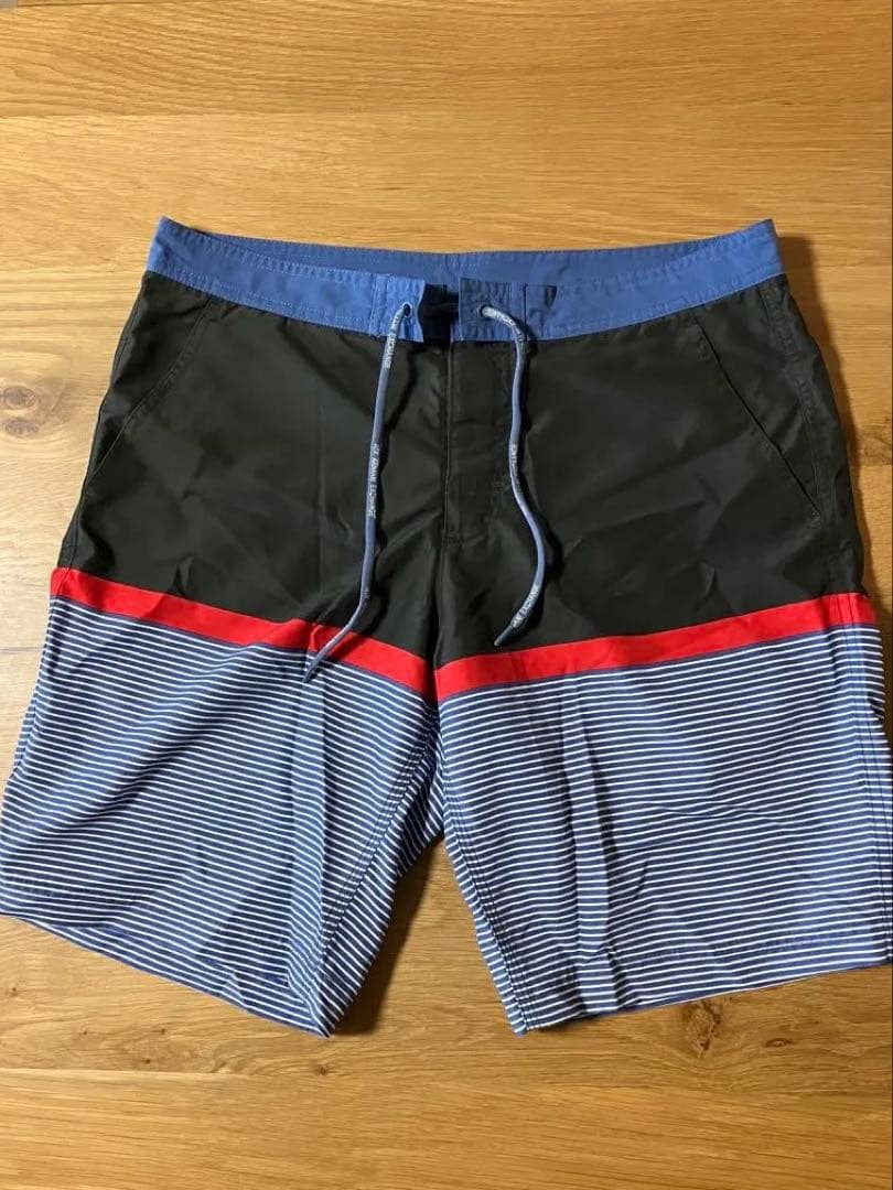 ストライプデザインのArmani Exchange製水着、Mサイズ。