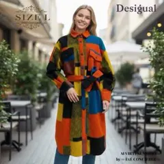 Desigual デシグアル ロングコート フロッキー 総柄 派手 黒