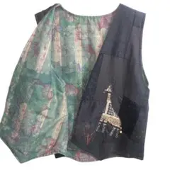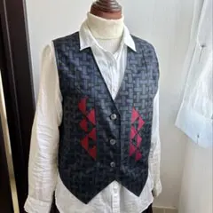 アンティーク調 手作り 古布 刺子 パッチワーク 中綿ベスト
