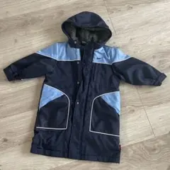 鮮やかなレッドとブルーの配色、ナイロン製の軽量ジャケット。