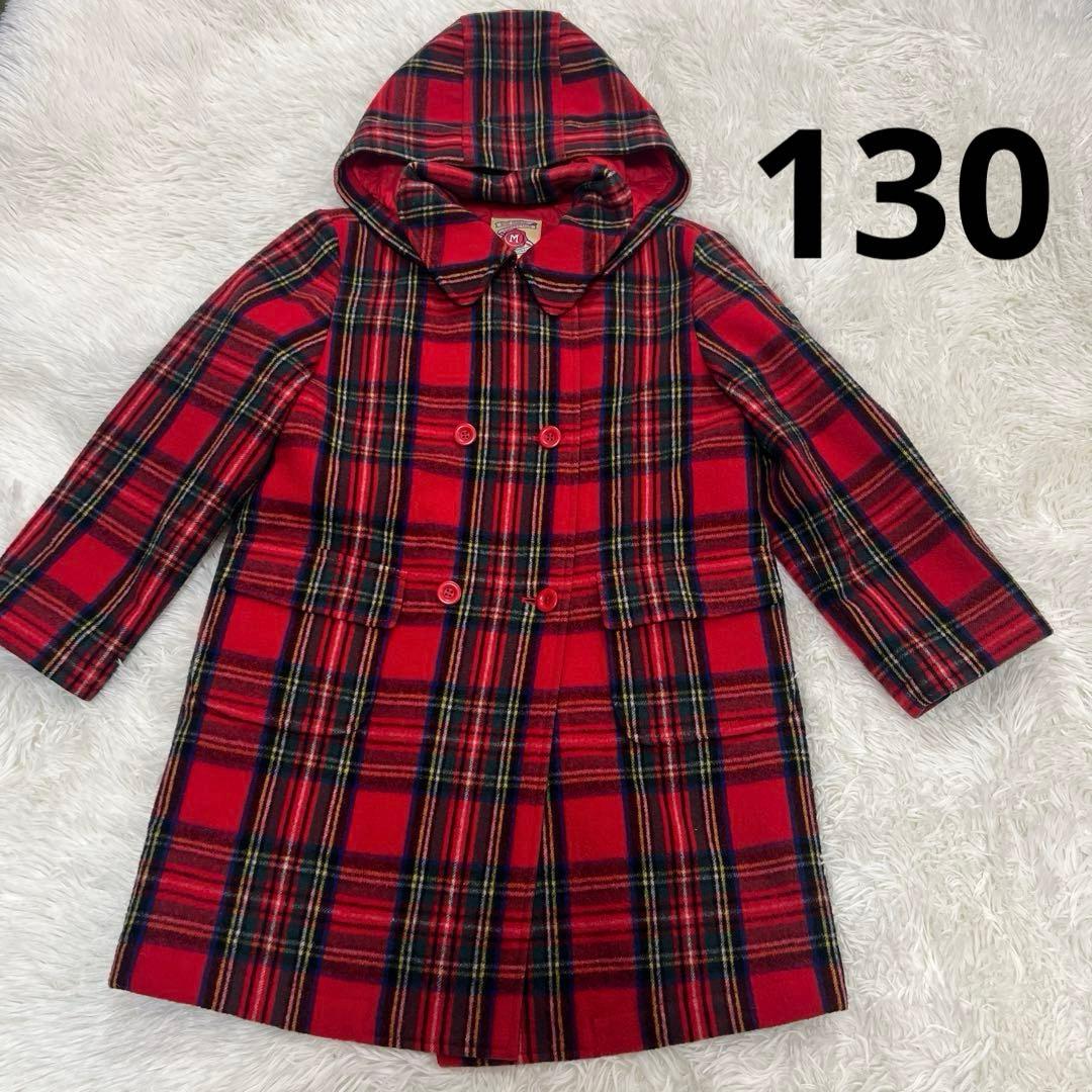 日本製 美品 MIKIHOUSE チェック 2way コート 赤 130