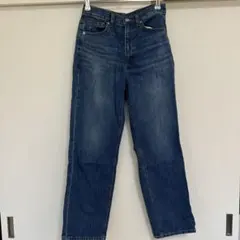 ライトブルーのストレートデニム、シンプルで合わせやすいデザイン。