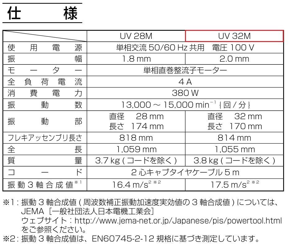新品 ハイコーキ HiKOKI コンクリートバイブレータ AC100V フレキシブル型 振動部直径32mm UV32M 打設 締固め 日立 電動工具 コンバイ 振動器 振動機