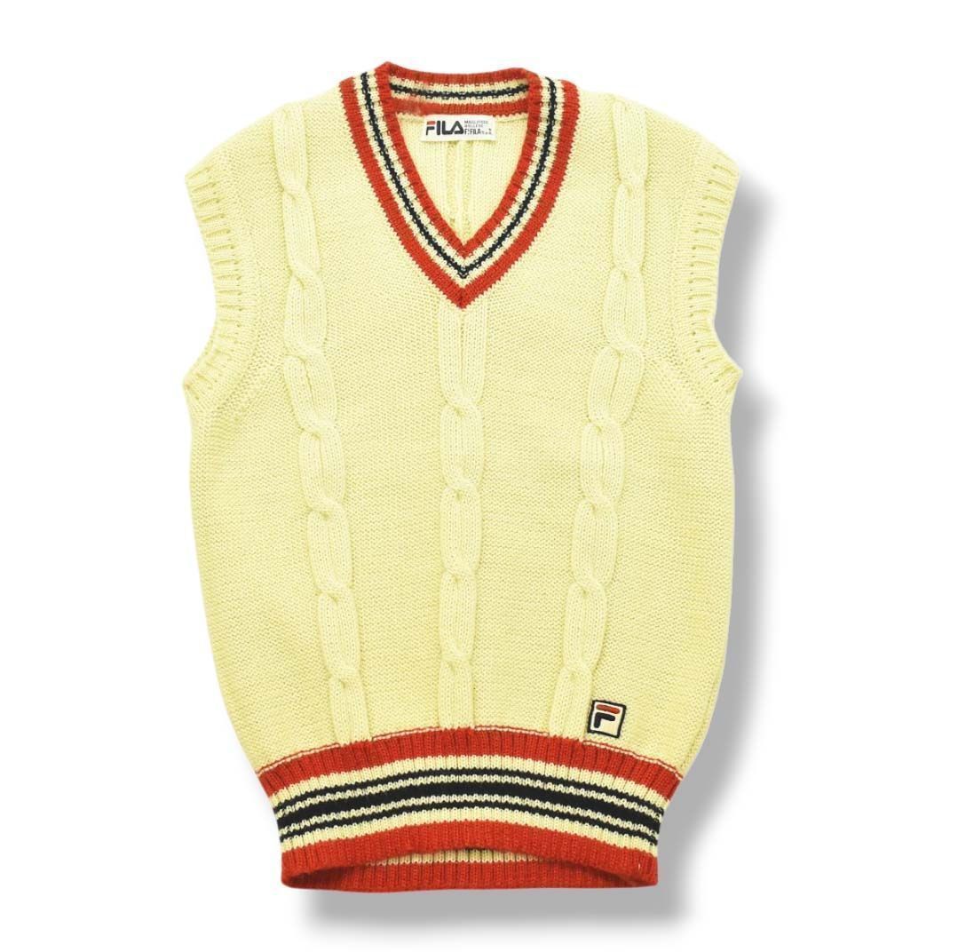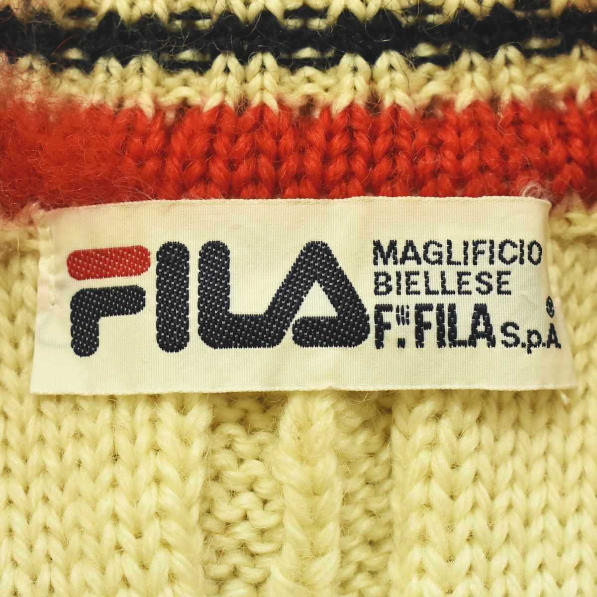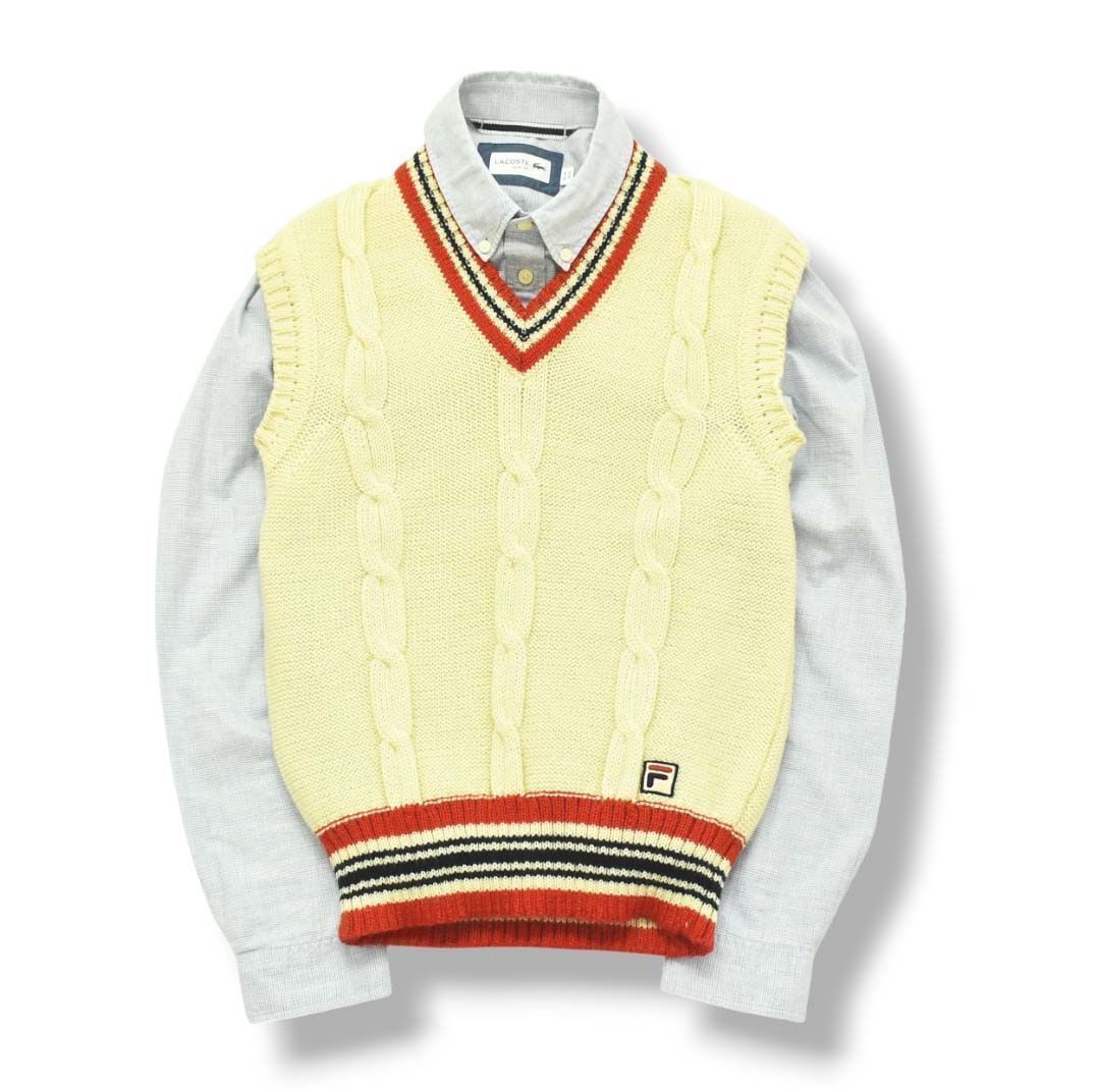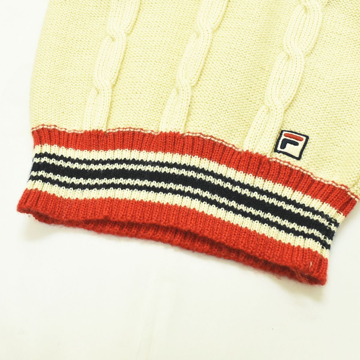 【美品】 70s 80s ヴィンテージ フィラ FILA MAGLIFICIO BIELLESE ケーブル チルデン ニット セーター ベスト S相当 クリーム x ボーダー柄 メンズ レディース ユニセックス