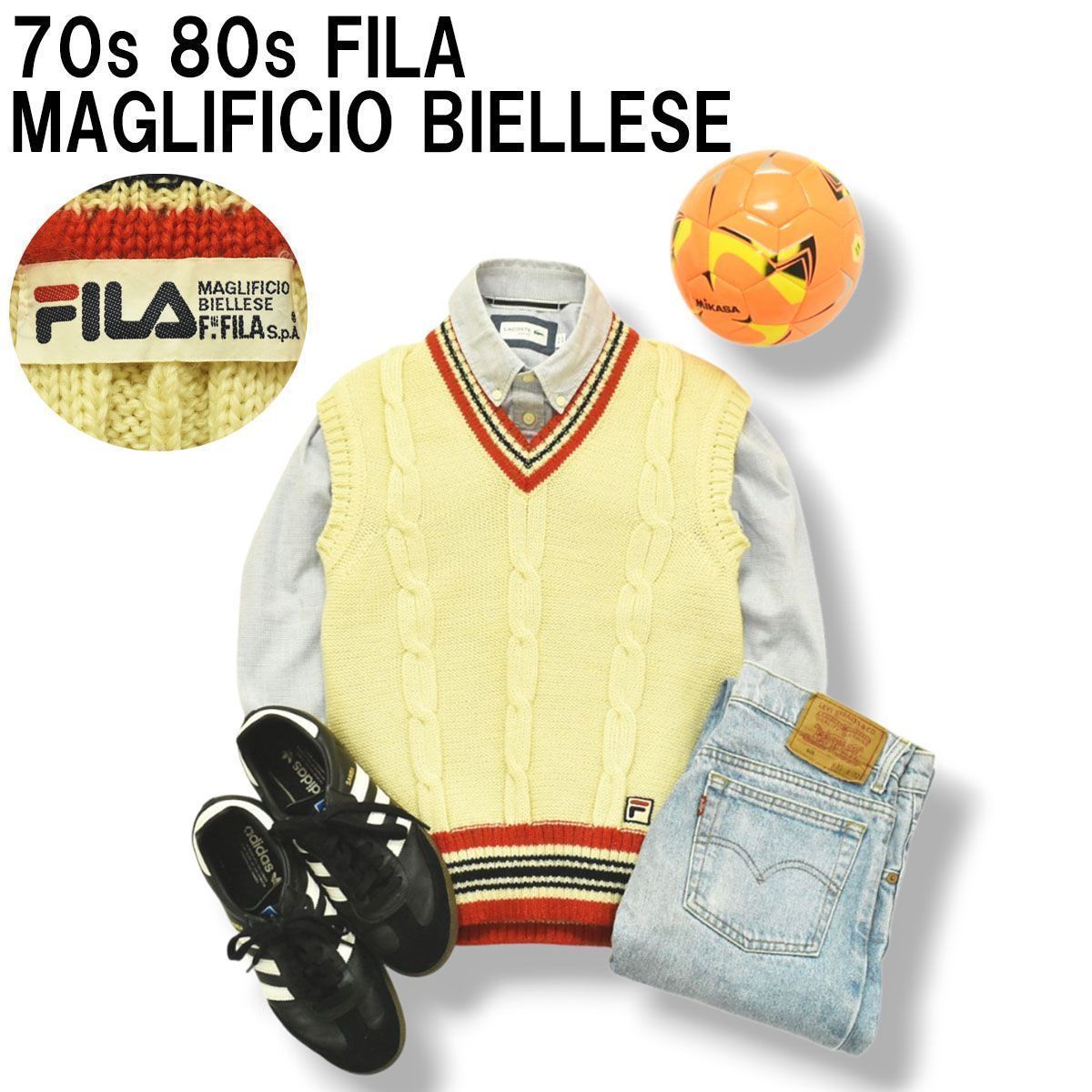 『 フィラ FILA 』「 70s 80s MAGLIFICIO BIELLESE ケーブル チルデン ニット セーター ベスト 」
