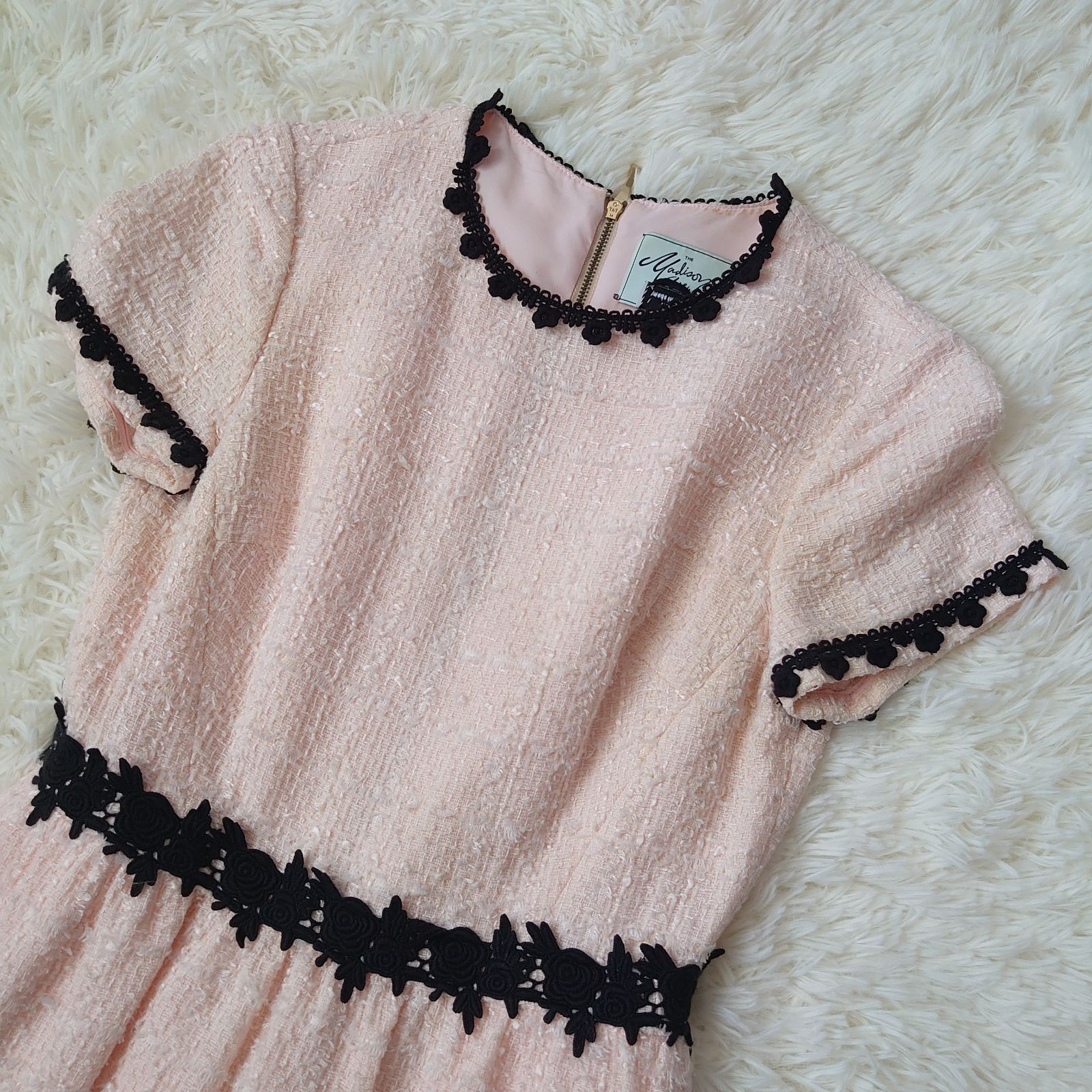 ケイトスペード マディソンアベニュー ツイードピンクワンピース 膝丈