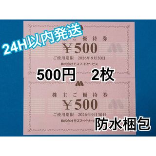【9月モス】モスバーガー 株主優待券 500円×2枚